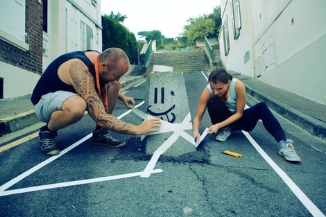 Street Art, auch Urban Art genannt, ist ein Sammelbegriff für Kunst im öffentlichen Raum. Sie umfasst verschiedene Ausdrucksformen wie Graffiti, Schablonenkunst, Installationen und auch Tape Art.
